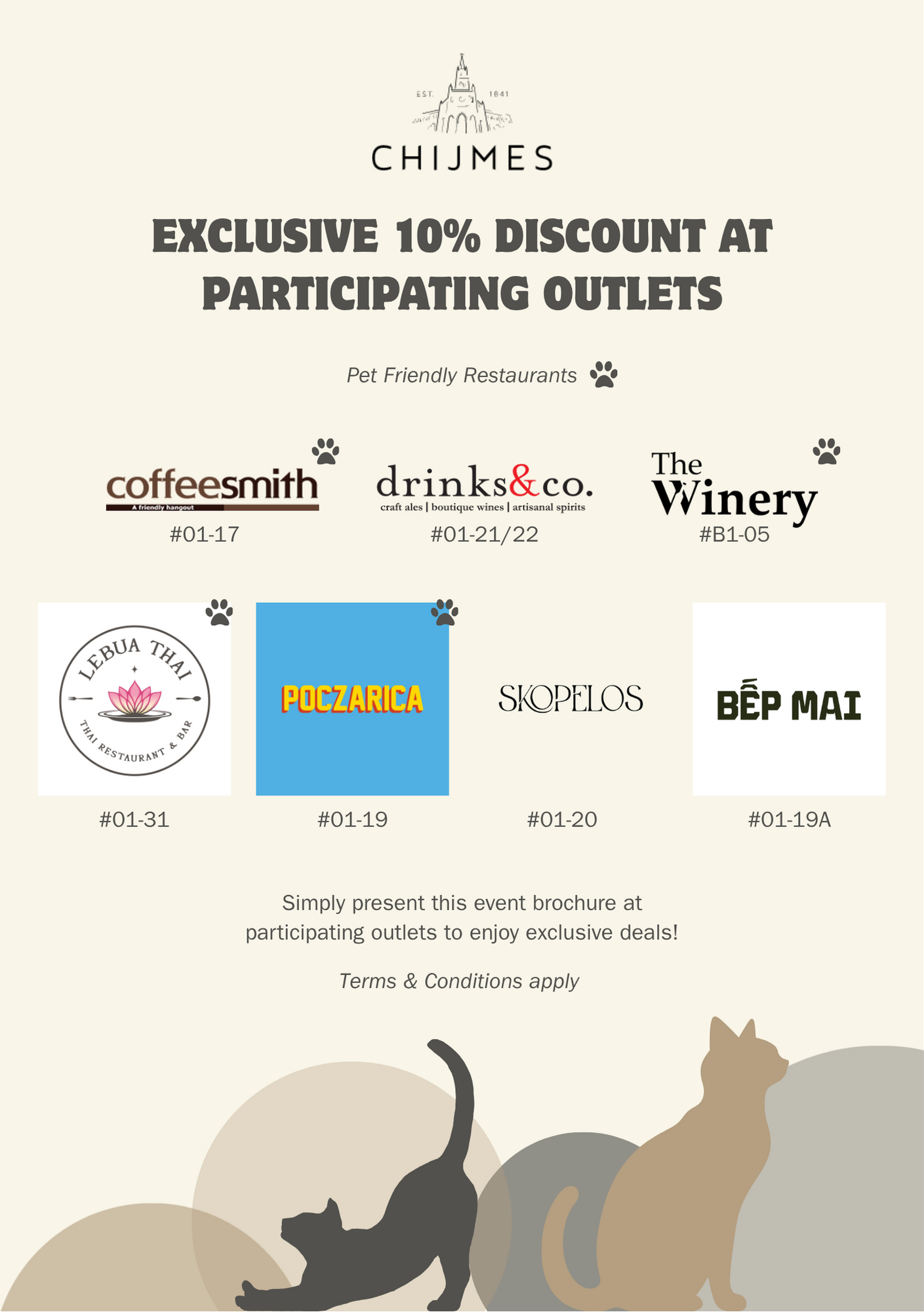 Join us this Pet-ober at CHIJMES and enjoy a 10% promotion at our participating outlets on our event days!